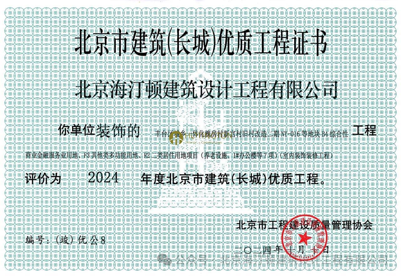 我司承建的丰台大悦春风里项目精装修工程,荣获“北京市建筑(长城)优质工程奖”!在此,我们对为该项目付出辛勤努力的所有员工表示热烈的祝贺与感谢!
